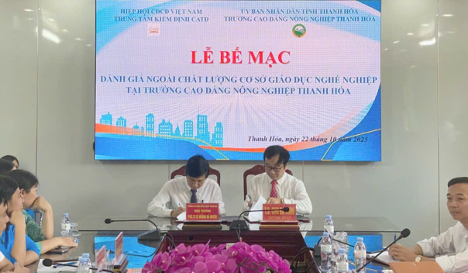 Khép lại lễ bế mạc, hai bên đã ký Biên bản kết thúc đợt đánh giá ngoài chất lượng cơ sở giáo dục nghề nghiệp. Đây là một dấu mốc quan trọng, là bước đệm giúp Nhà trường củng cố niềm tin, khẳng định thương hiệu để tiến tới xây dựng trường đạt chuẩn cơ sở giáo dục nghề nghiệp chất lượng cao theo đề án phát triển trường đến năm 2030, tầm nhìn đến năm 2045 đã được UBND tỉnh Thanh Hoá phê duyệt.