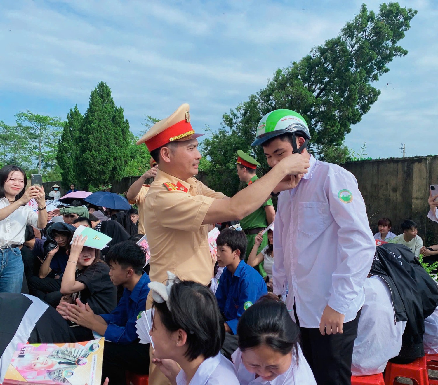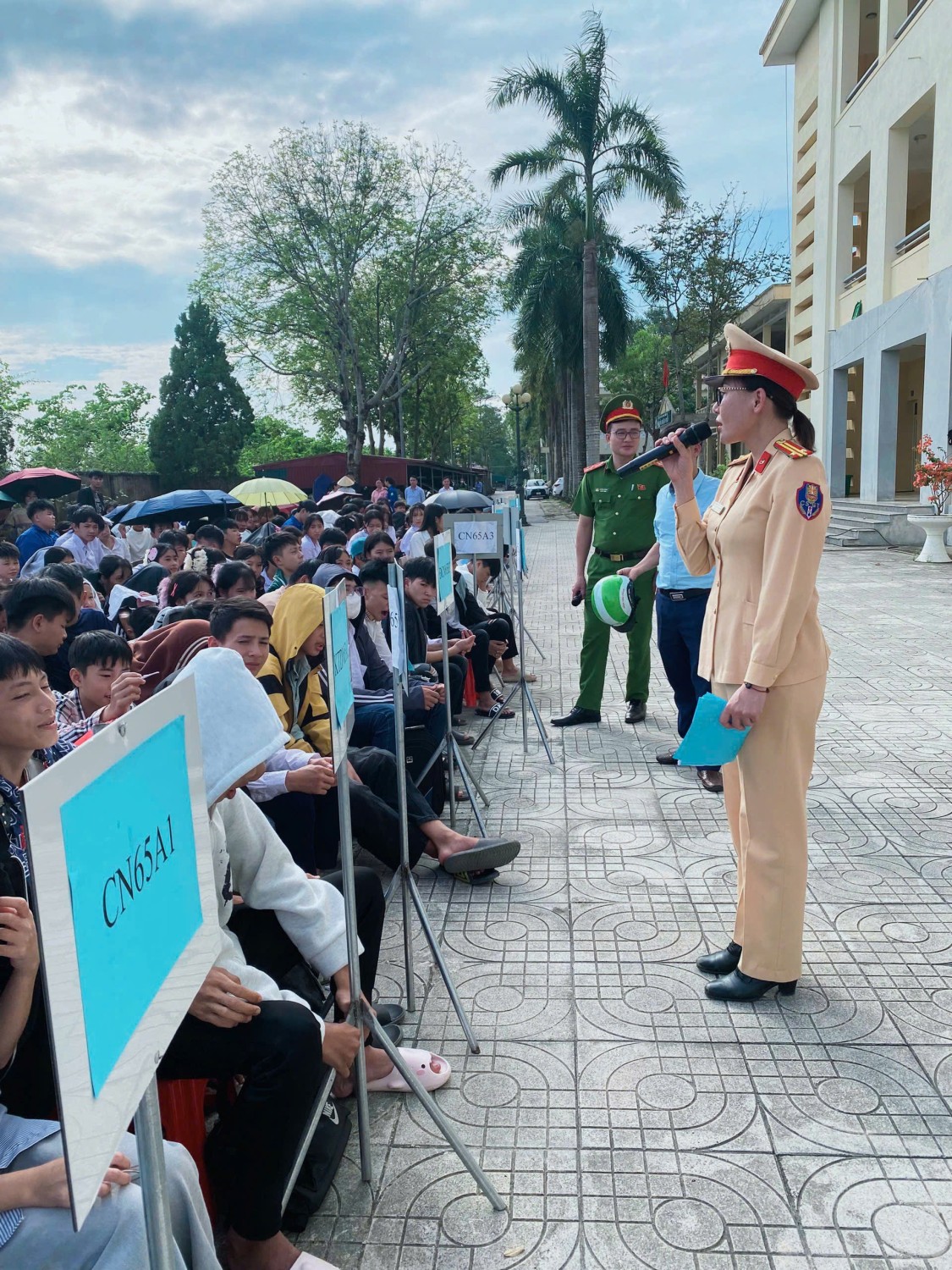 Tại buổi tuyên truyền, lực lượng Cảnh sát giao thông đã thông tin về tình hình an toàn giao thông trên địa bàn trong thời gian qua, những lỗi vi phạm phổ biến thường dẫn đến tai nạn; diễn biến phức tạp của các loại tội phạm, đặc biệt là các vụ việc liên quan đến đối tượng học sinh, sinh viên; giới thiệu, phân tích các quy định cơ bản của Luật trật tự, an toàn giao thông đường bộ; phổ biến những hành vi vi phạm thường gặp như điều khiển phương tiện khi chưa đủ tuổi, không đội mũ bảo hiểm, đi xe hàng ba, sử dụng điện thoại khi điều khiển phương tiện… Đồng thời, hướng dẫn kỹ năng lái xe an toàn, cách xử lý các tình huống nguy hiểm khi tham gia giao thông, tư thế ngồi và đội mũ bảo hiểm đúng quy cách, tạo thói quen tự bảo vệ bản thân khi tham gia giao thông.