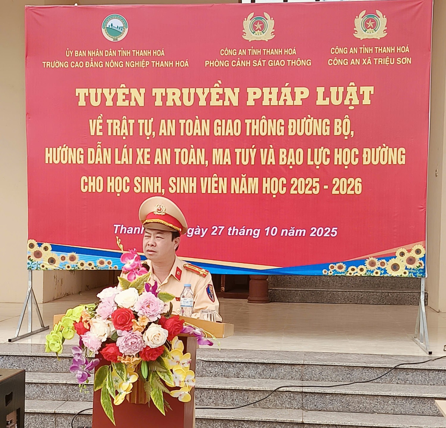 Thượng tá Trang Công Đông-phó trưởng phòng CSGT công an tỉnh Thanh Hóa tại buổi tuyên truyền