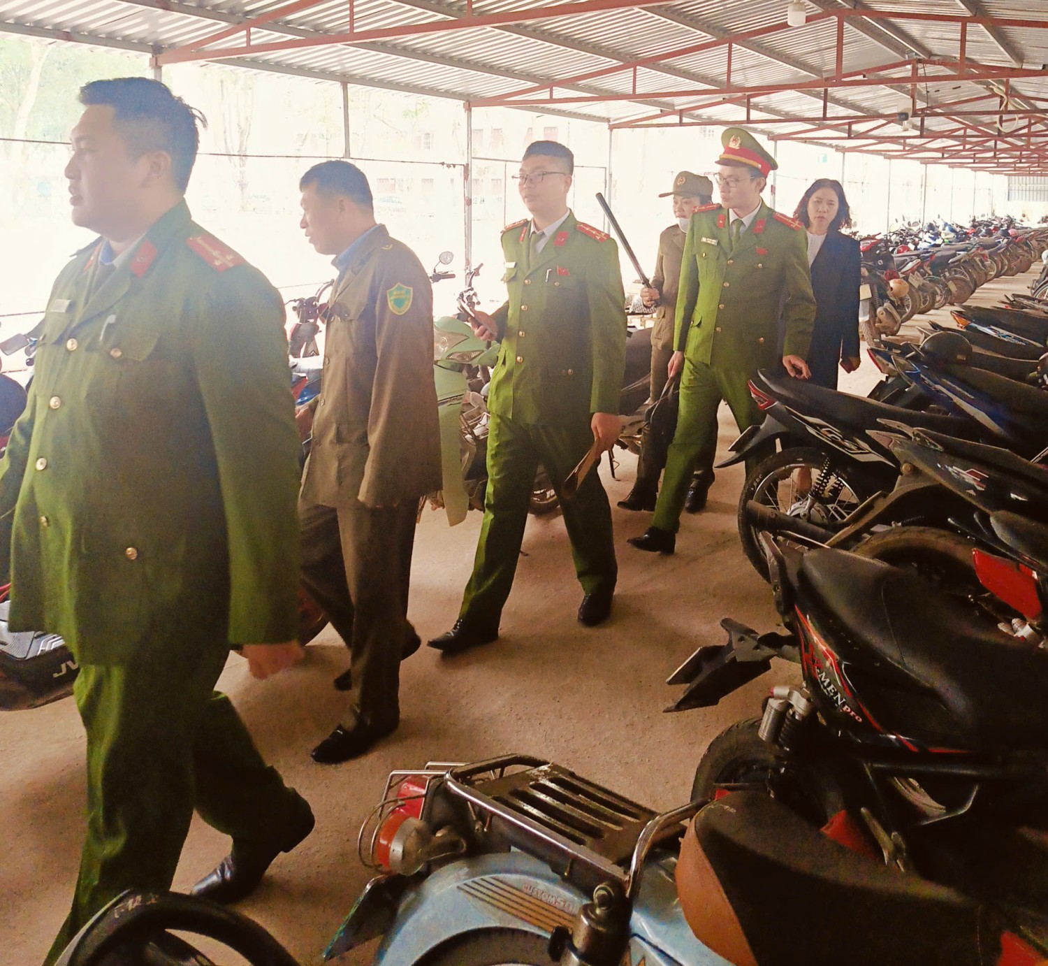 Công an xã Triệu Sơn kiểm tra phương tiện giao thông của HSSV