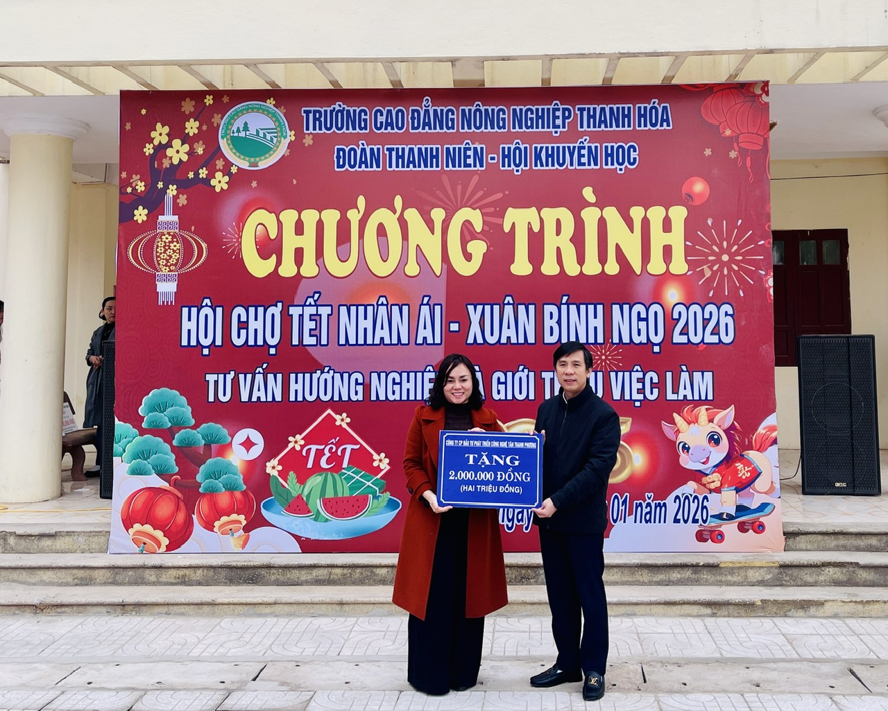 Song song với các hoạt động hội chợ, tại đây, nhiều doanh nghiệp, tổ chức đã tư vấn, giới thiệu việc làm cho học sinh, sinh viên; đồng thời quan tâm và đồng hành tích cực với chương trình khuyến học: Công ty Cổ phần Greenfeed Việt Nam trao 19 suất học bổng theo chương trình liên kết đào tạo, trị giá 161,5 triệu đồng; Công ty Cổ phần Cung ứng Nhân lực Quốc tế Thành Đô trao 10 suất học bổng tiếng Nhật trị giá 50 triệu đồng; Hội Doanh nhân trẻ tỉnh Thanh Hóa – Công ty Cổ phần Đầu tư Phát triển Vinagreen trao 40 suất quà cho học sinh, sinh viên thuộc hộ nghèo; VNPT Thanh Hóa ủng hộ 10 triệu đồng cho Quỹ Khuyến học; Bệnh viện Đa khoa An Việt Triệu Sơn hỗ trợ 5 chuyến xe đưa học sinh, sinh viên về quê ăn Tết; Công ty TNHH Á Châu Thanh Hoa trao tặng 5 triệu đồng. Chương trình còn nhận được sự đồng hành của Cà phê Aha (164 Phạm Vấn), Công ty TNHH & Xây dựng An Hưng, MTTQ phường Hạc Thành, Công ty Cổ phần Phát triển Việt Hùng cùng nhiều tổ chức, cá nhân, mạnh thường quân trong và ngoài trường. Thông qua chương trình, có 131 học sinh, sinh viên được nhận quà với mỗi suất trị giá 300.000 đồng; 100% học sinh, sinh viên được hỗ trợ chuyến xe về quê ăn Tết.