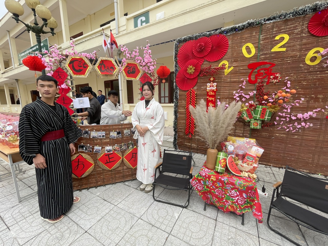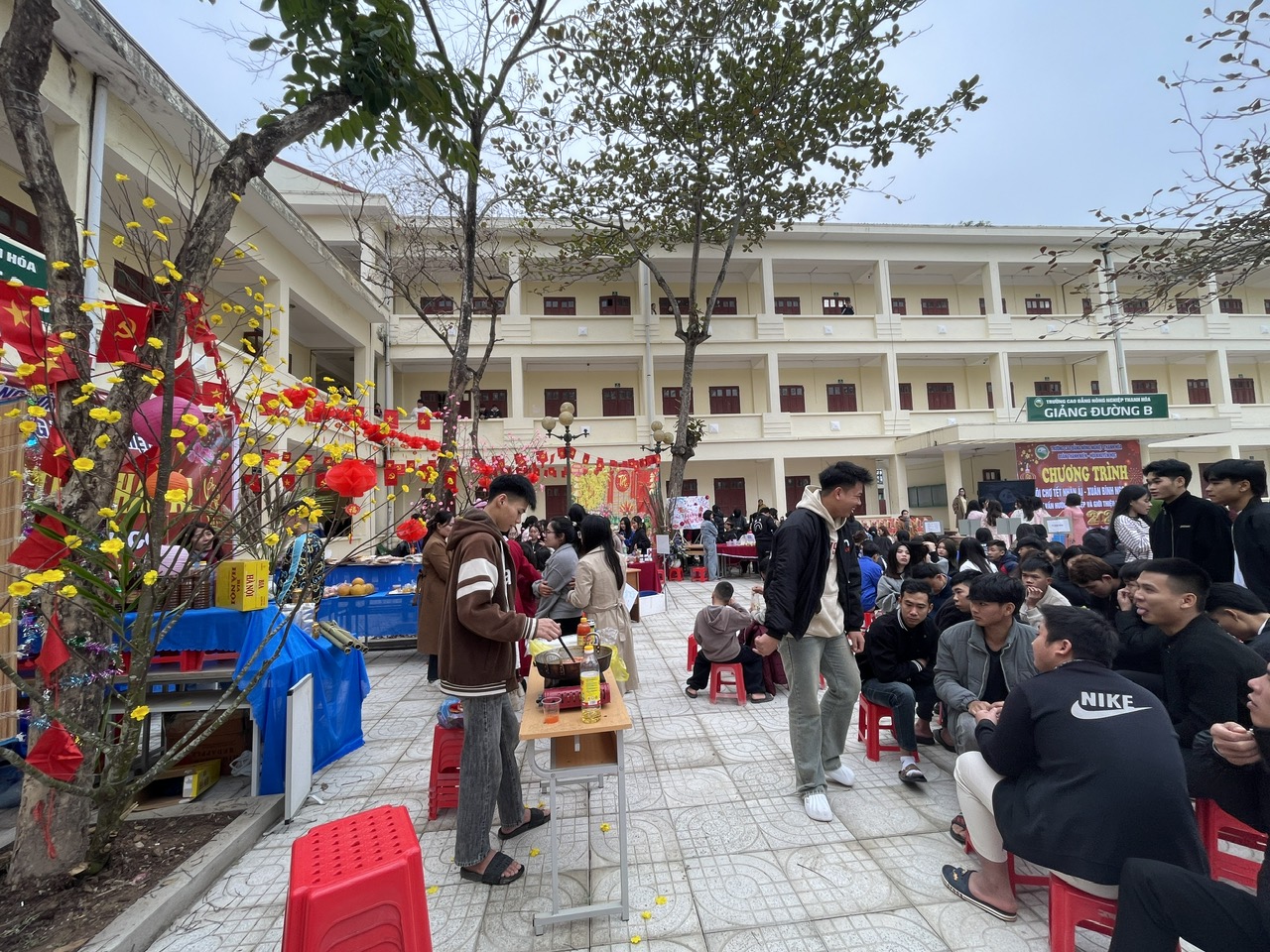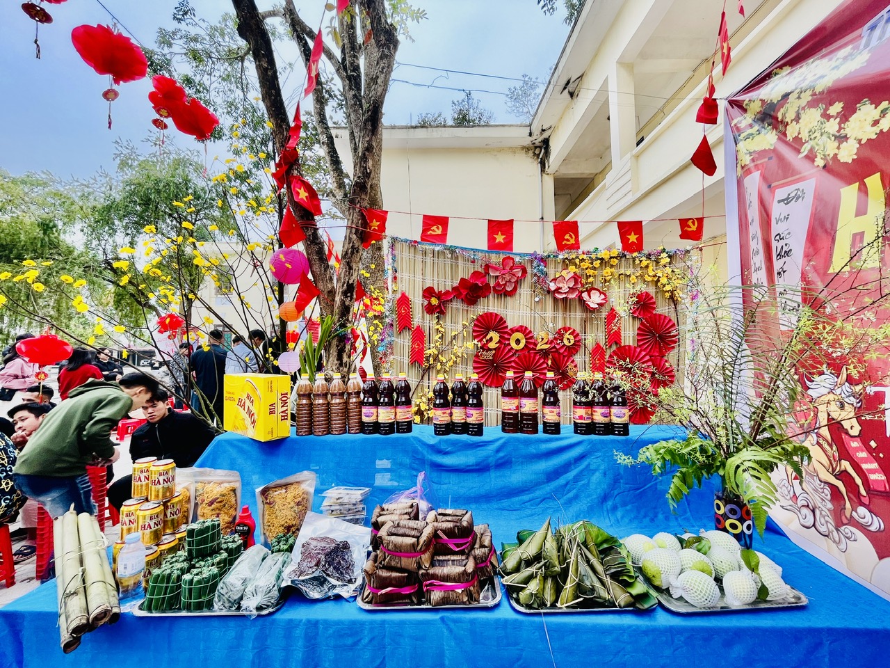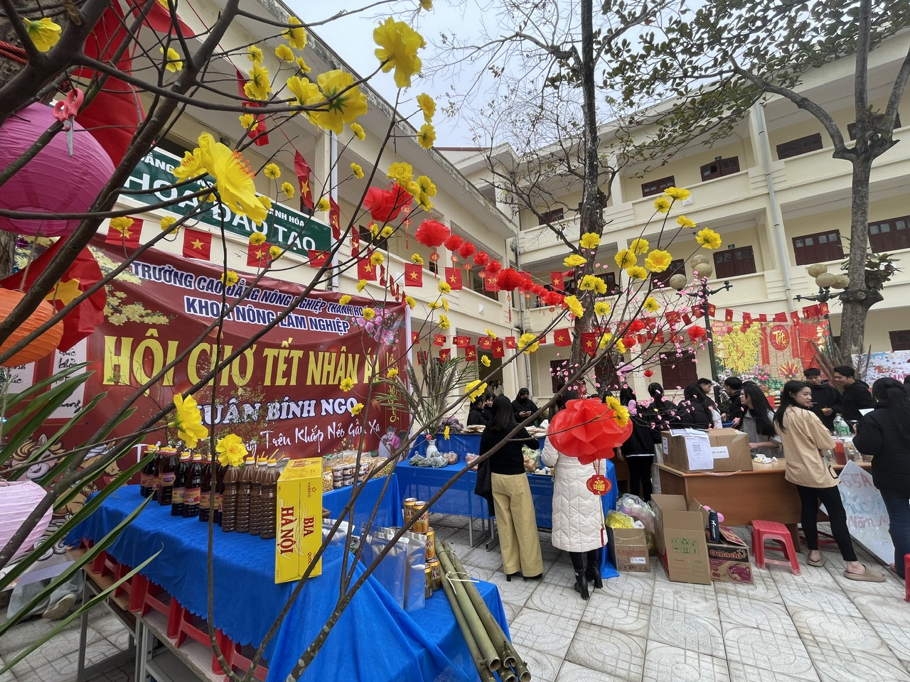 Điểm nhấn của hội chợ là các gian hàng chợ xuân do các khoa, tổ bộ môn, chi đoàn giáo viên và nhân viên nhà trường tổ chức. Những gian hàng rực rỡ sắc xuân với các sản phẩm đa dạng như ẩm thực ngày Tết, hàng tiêu dùng, đồ handmade, quà lưu niệm… không chỉ tái hiện không khí Tết cổ truyền mà còn tạo sân chơi trải nghiệm, giúp học sinh, sinh viên rèn luyện kỹ năng sống và kỹ năng tiếp cận hoạt động kinh doanh. Đặc biệt, gian hàng “0 đồng” được hình thành từ sự chung tay đóng góp của các tổ chức, cá nhân, nhà hảo tâm đã mang đến nhiều phần quà thiết thực, góp phần giúp học sinh, sinh viên có hoàn cảnh khó khăn đón Tết đủ đầy hơn