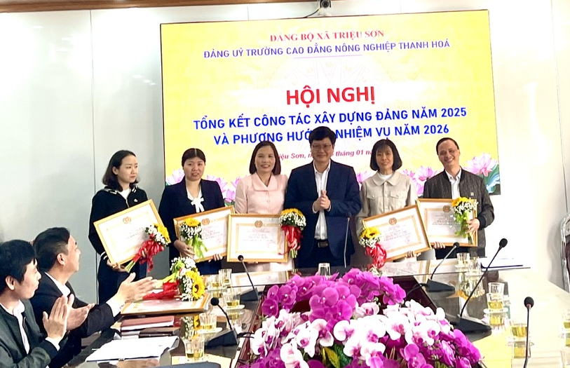 Nhân dịp này, Đảng ủy Trường Cao đẳng Nông nghiệp Thanh Hóa đã trao Giấy khen cho 02 chi bộ và 06 đảng viên có thành tích xuất sắc trong công tác năm 2025. Những kết quả đạt được trong năm 2025 là nền tảng quan trọng để nhà trường tiếp tục thực hiện thắng lợi các mục tiêu, nhiệm vụ năm 2026, góp phần vào sự phát triển bền vững của địa phương trong giai đoạn mới.