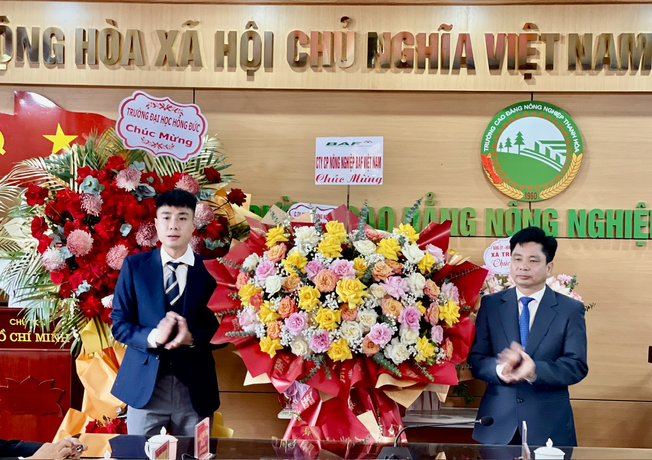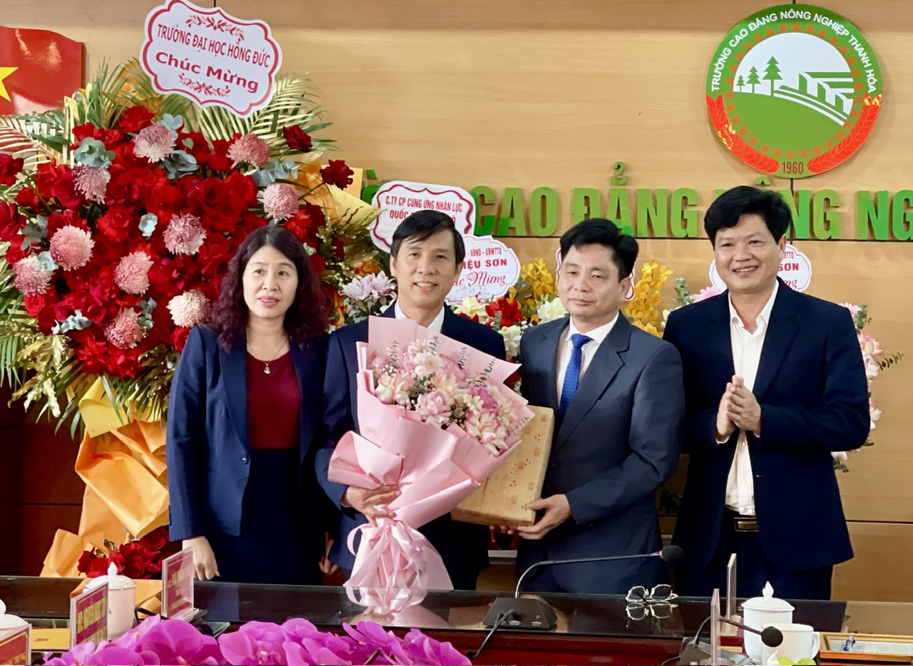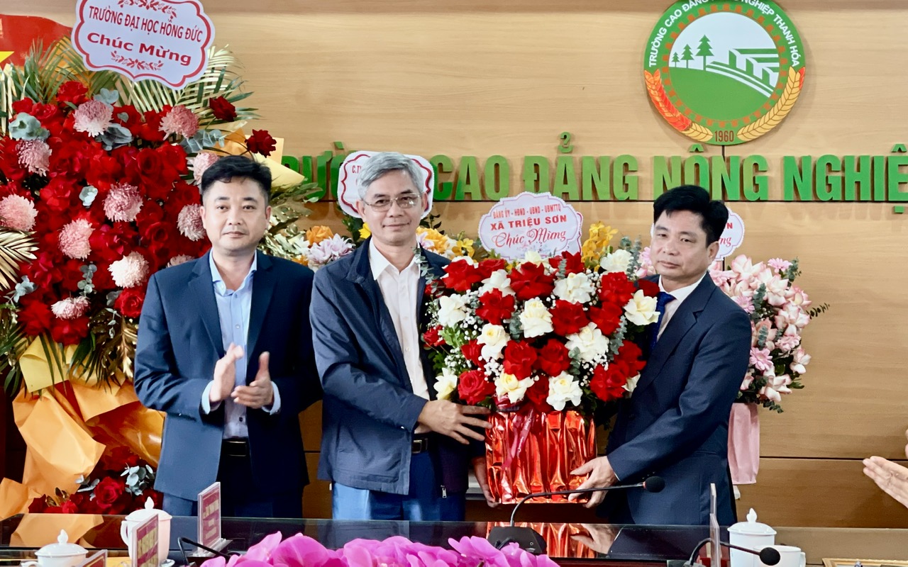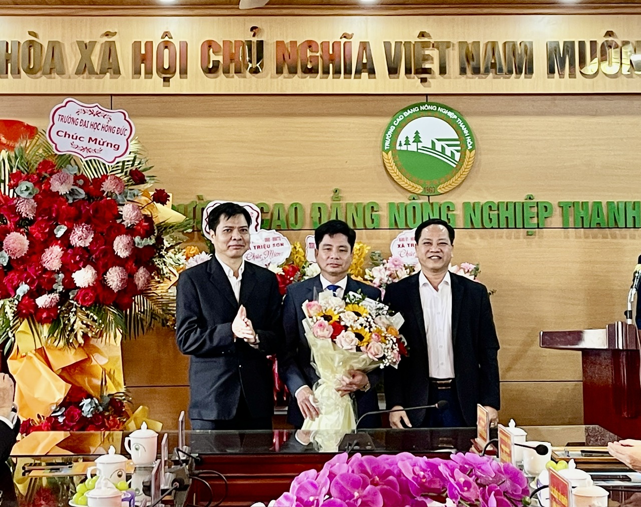Tại Hội nghị, đại diện Đảng ủy, các cơ quan, đơn vị, tổ chức và đối tác đã tặng hoa chúc mừng PGS.TS Lê Viết Báu, thể hiện sự tin tưởng, đồng hành và kỳ vọng vào chặng đường phát triển mới của Trường Cao đẳng Nông nghiệp Thanh Hóa.