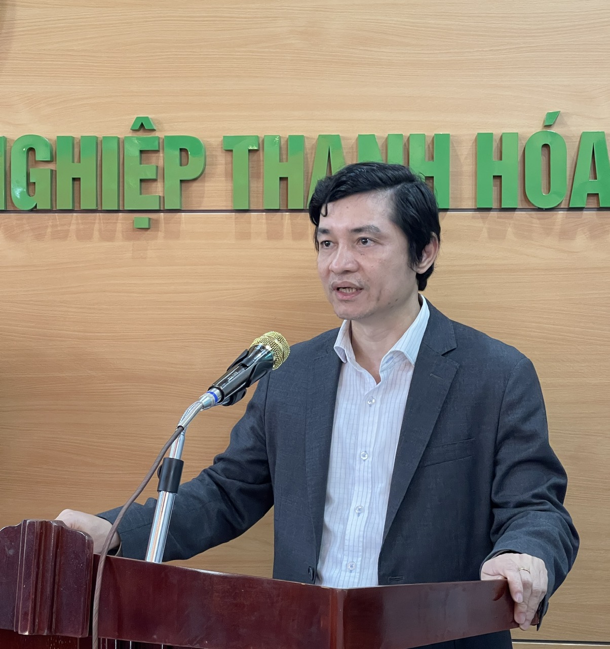 Đồng chí Đầu Thanh Tùng phát biểu chúc mừng và giao nhiệm vụ cho Hiệu trưởng trường Cao đẳng Nông nghiệp Thanh Hóa.