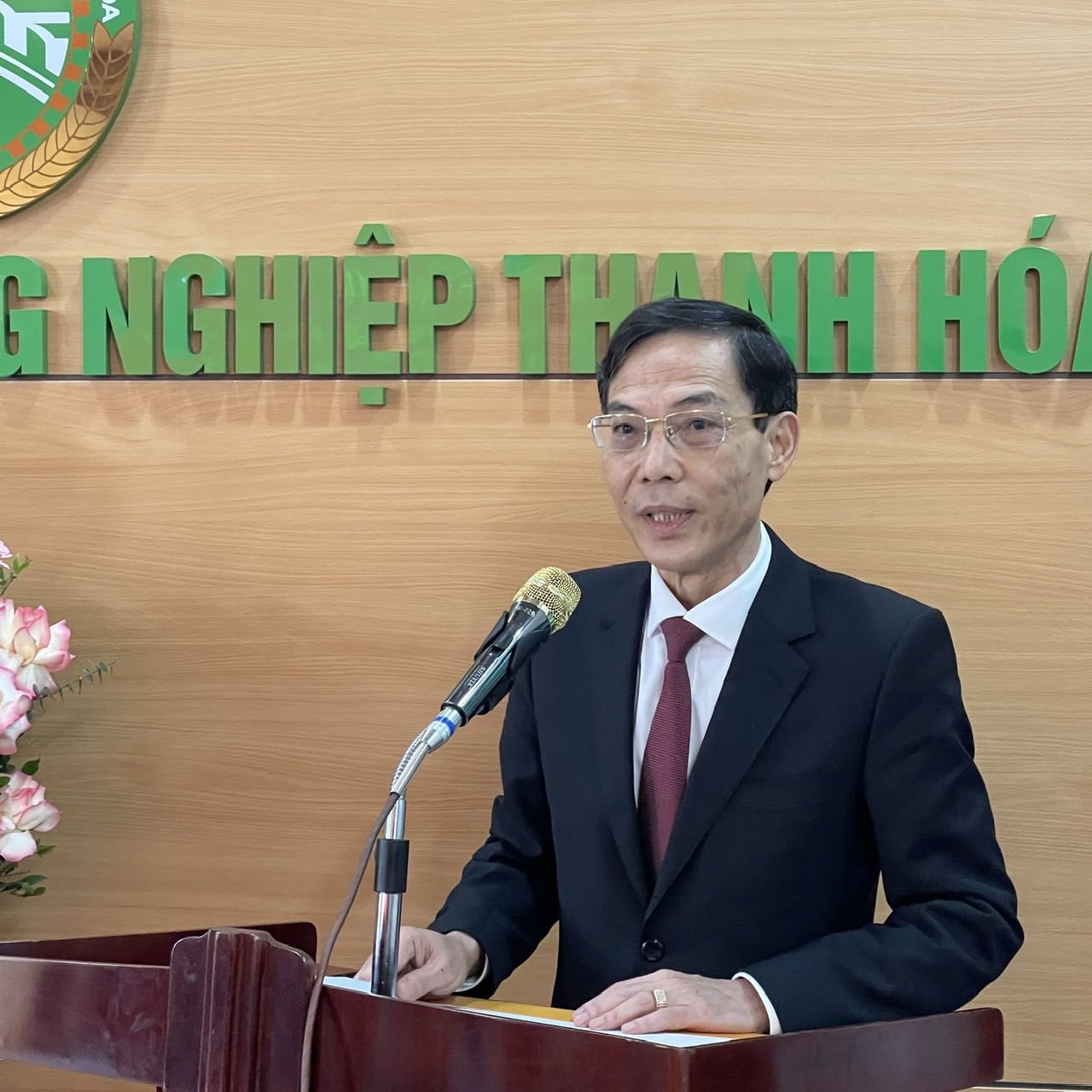 Phát biểu nhận nhiệm vụ, PGS.TS Lê Viết Báu bày tỏ lòng biết ơn sâu sắc tới Tỉnh ủy, UBND tỉnh Thanh Hóa và các sở, ban, ngành đã tin tưởng giao trọng trách. Tân Hiệu trưởng khẳng định sẽ nỗ lực cao nhất, kế thừa và phát huy những giá trị truyền thống tốt đẹp, những thành quả của các thế hệ lãnh đạo, cán bộ, giảng viên đi trước; đề cao tinh thần “đồng tâm – hiệp lực”, giữ vững giá trị cốt lõi, cùng tập thể Nhà trường viết tiếp chặng đường phát triển trong bối cảnh nông nghiệp chuyển mạnh sang công nghệ cao, kinh tế xanh và chuyển đổi số. Đồng chí nhấn mạnh phương châm hành động: lấy đoàn kết làm sức mạnh, lấy chất lượng đào tạo làm danh dự, lấy gắn kết doanh nghiệp và hợp tác quốc tế làm đòn bẩy phát triển. PGS.TS Lê Viết Báu cũng bày tỏ mong muốn tiếp tục nhận được sự quan tâm, chỉ đạo sát sao của lãnh đạo tỉnh; sự phối hợp, đồng hành của các cơ quan, đơn vị, đối tác; cùng sự ủng hộ, chung sức của toàn thể cán bộ, giảng viên, viên chức, người lao động để hoàn thành tốt nhiệm vụ được giao.