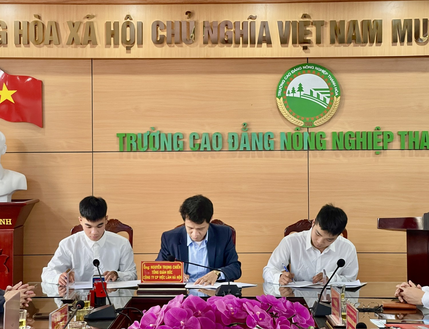 Kết thúc chương trình, đại diện Trường Cao đẳng Nông nghiệp Thanh Hóa và Công ty Cổ phần Việc làm Hà Nội đã ký kết triển khai các nội dung hợp tác đào tạo theo hợp đồng; đồng thời doanh nghiệp tiến hành ký biên bản thỏa thuận với sinh viên về chế độ hỗ trợ trong suốt quá trình học tập.