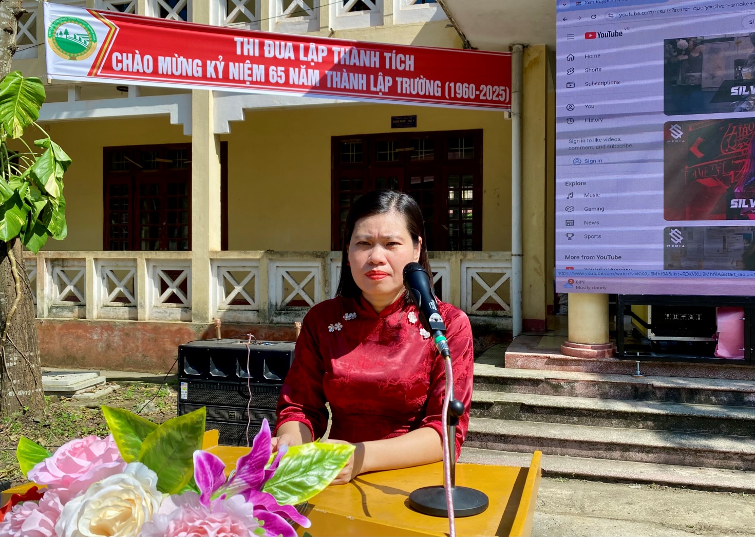 Ths. Hoàng Thị Nga – Phó Chủ tịch Công đoàn trường phát biểu tại buổi Lễ khai giảng