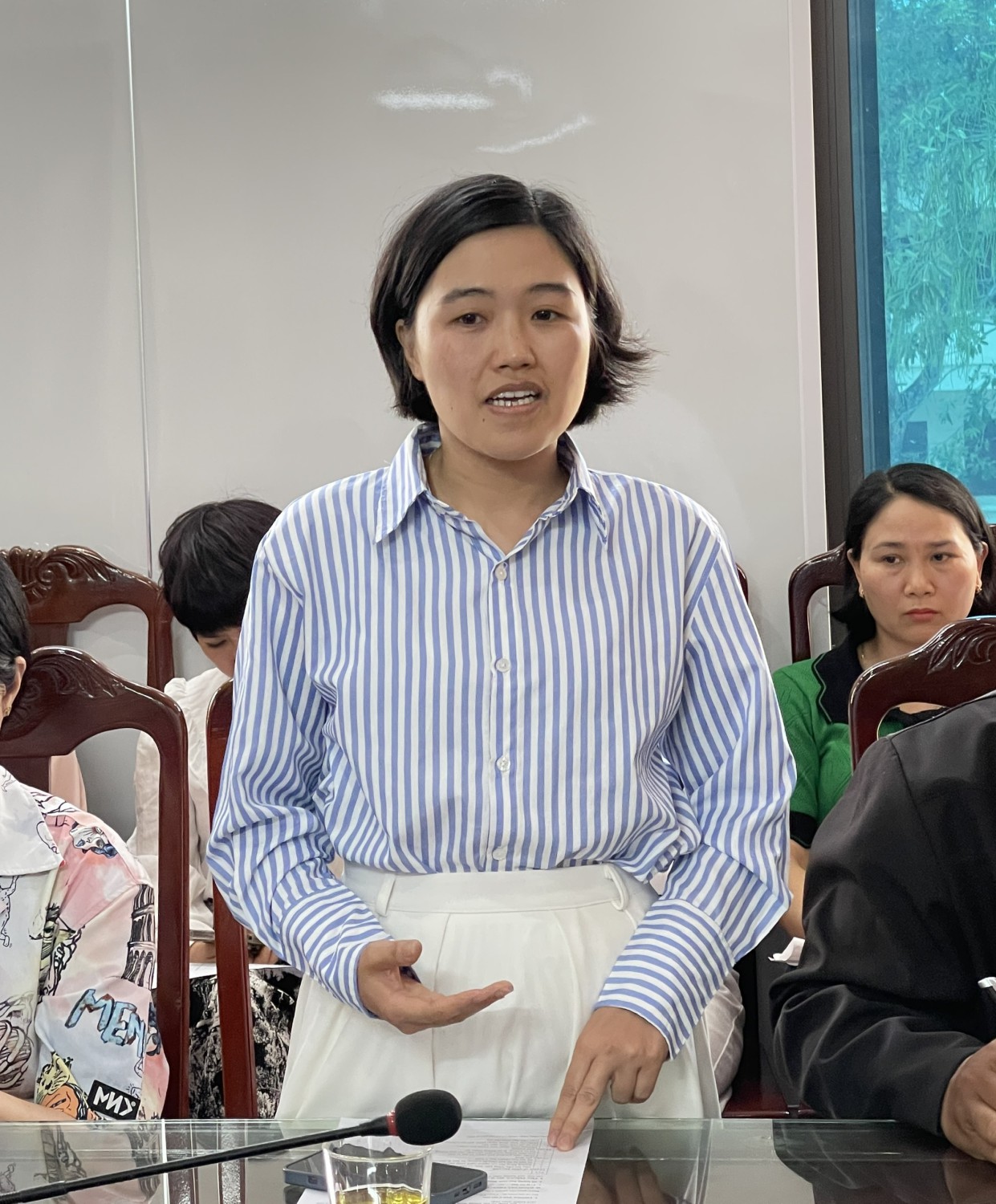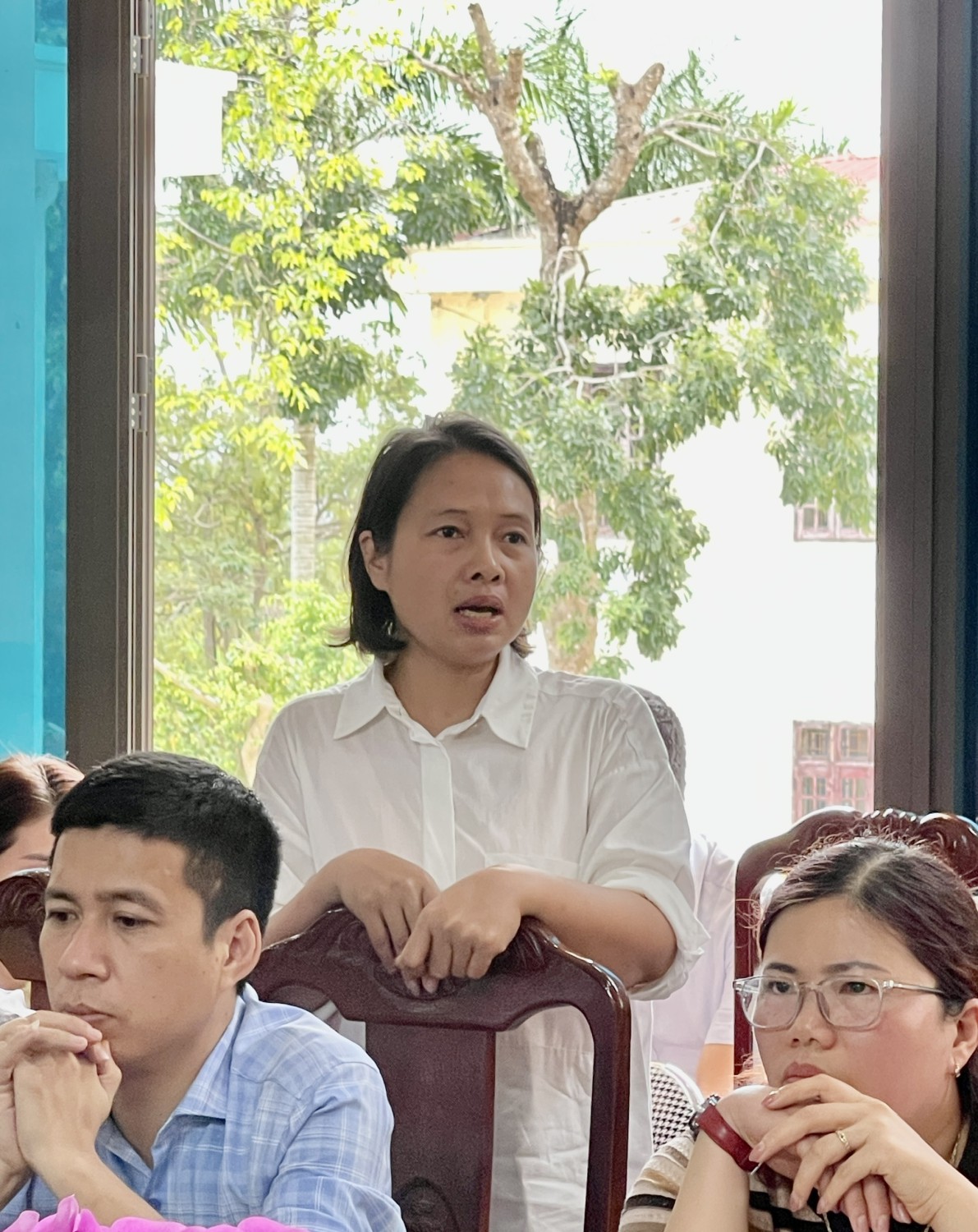 Các giáo viên chủ nhiệm trình bày ý kiến tham luận trong buổi làm việc.